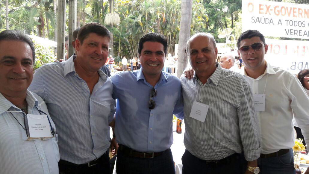 O vereador Joaquim de Lima, o Secretário de Governo Carlinhos Queiroz, o Deputado Federal Newton Cardoso Junior, o Prefeito Salim Curi e o Procurador Márcio Quirino, durante encontro viabilizando recursos para o município (Foto: Divulgação)