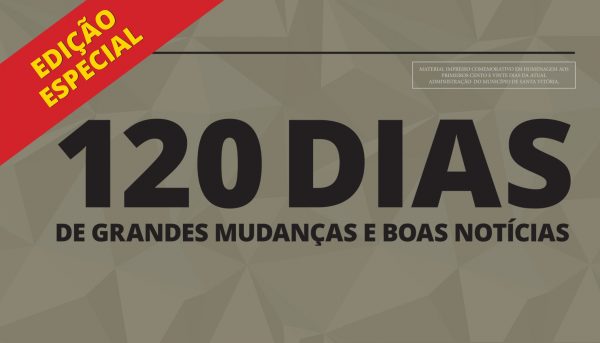 Material impresso comemorativo em homenagem aos primeiros cento e vinte dias da atual administração do município de Santa Vitória.