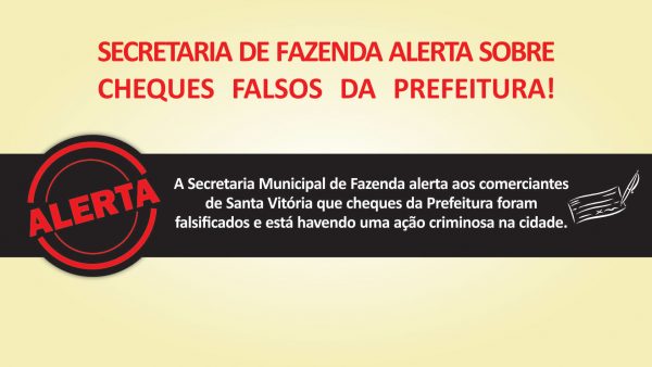 A Secretaria Municipal de Fazenda alerta aos comerciantes de Santa Vitória que cheques da Prefeitura foram falsificados e está havendo uma ação criminosa na cidade.
