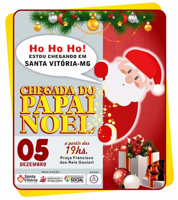 Para marcar a chegada do ‘bom velhinho’, na terça-feira, dia 05 de dezembro, em Santa Vitória, uma grande festa está sendo preparada.