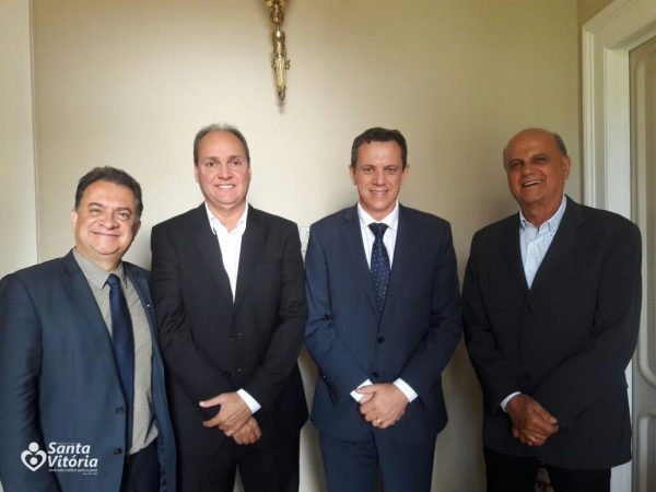 Na última semana, o Prefeito de Santa Vitória Salim Curi, acompanhado de seu Vice-Prefeito Renato José de Paula e do Deputado Estadual Leonídio Bouças, estiveram no Palácio da Liberdade, na capital mineira, onde foram recebidos no gabinete pelo Subsecretário de Assuntos Municipais Marco Antônio Viana Leite.