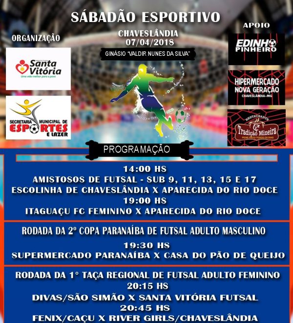 Sabendo da importância do esporte para moradores do distrito de Chaveslândia, a Prefeitura está apoiando a rodada do Sábado Esportivo, dia 07 de abril, a partir das 14 horas, no poliesportivo “Valdir Nunes da Silva”.