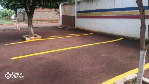 Faixas no estacionamento da Fração PM M8037, no distrito de Chaveslândia foram demarcadas com reforços na pintura de sinalização.