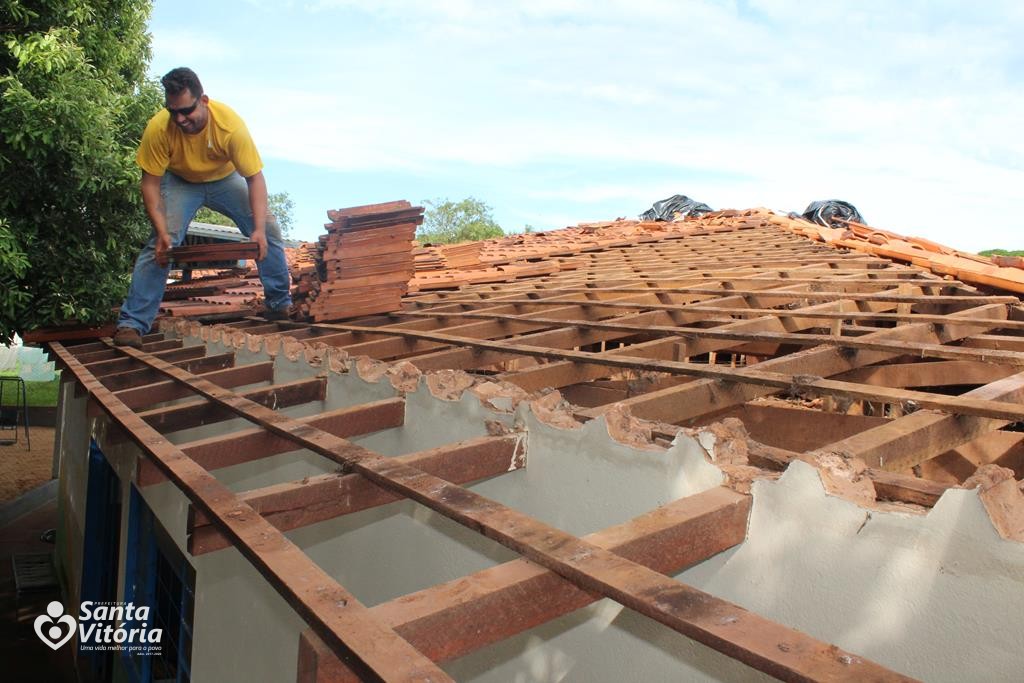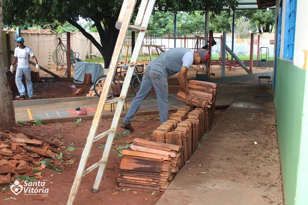 De acordo com o vice-prefeito e secretário Municipal de Obras, Renato José de Paula as obras de revitalização do CEMEI seguem em ritmo acelerado. O telhado antigo foi retirado e o novo já começa a ser colocado.