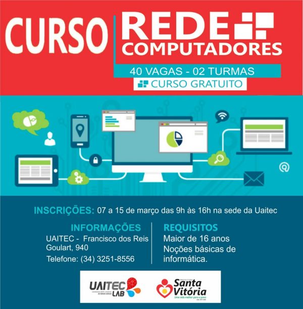 Estão abertas as inscrições para os cursos de Redes de Computadores ofertados pela Prefeitura Municipal em parceria com a UAITEC.