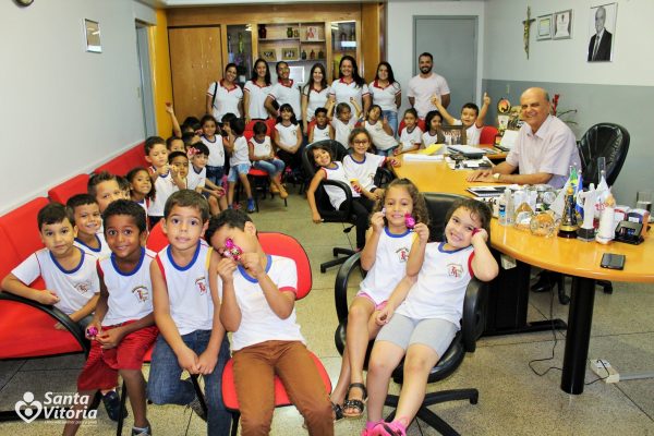 O prefeito Salim Curi, recebeu uma visita especial. Os alunos da Educação Infantil da Escola Municipal Tancredo Neves, acompanhados de seus professores e da diretora da escola.
