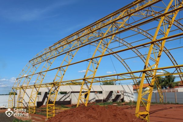 A construção da Quadra Escolar Coberta e Vestiário, anexa ao Complexo Esportivo Dionísio de Souza Santos, no Bairro Jardim Planalto, continuam em execução.