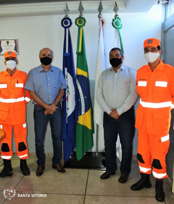 Nesta quarta-feira (06), o prefeito Salim Curi recebeu em seu gabinete o Tenente do Corpo de Bombeiros Militar de Minas Gerais, Luiz Donizete Silva e o Cabo Fagundes da Silva para a nomeação, pela primeira vez, de um coordenador da Defesa Civil no município de Santa Vitória.