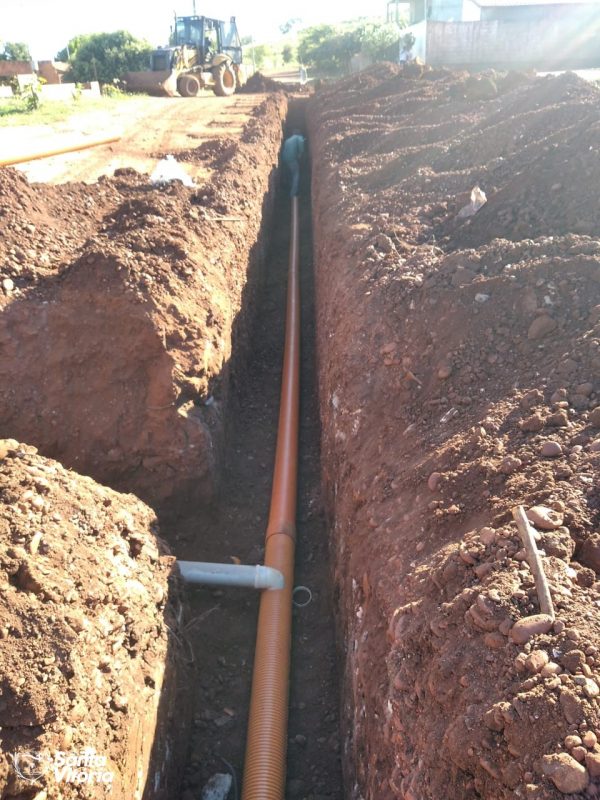 A Prefeitura de Santa Vitória por meio da Secretaria Municipal de Obras e Serviços Urbanos, está executando a obra de construção de Rede de esgoto na Av. Cassimiro Israel de Oliveira (23) entre rua 8 / 10, no distrito de Chaveslândia.