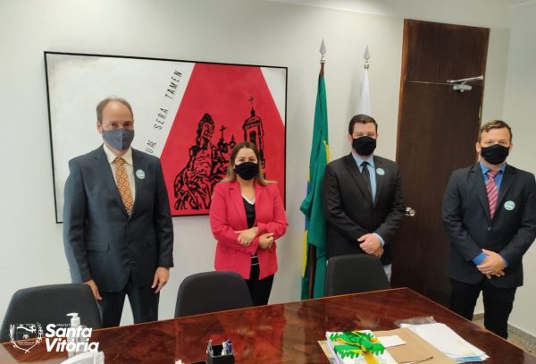 Na manhã desta quarta-feira, dia 21, o vice-prefeito de Santa Vitória, Renato José Paula acompanhado pelos secretários municipais, Fernando Bonito e Maurício Lorena estiveram no gabinete do Senador Rodrigo Pacheco (DEM), em Brasília, cumprindo agenda de governo em busca de recursos para o desenvolvimento de projetos no município. Na ocasião, foram recebidos pela assessora, Fátima Guedes.