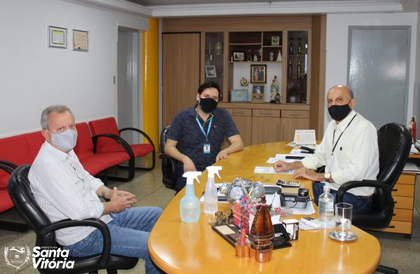Na manhã desta quinta-feira (5), o prefeito Salim Curi, juntamente com o secretário municipal de Desenvolvimento Econômico João Batista de Medeiros, recebeu em seu gabinete representante da rede de lojas Magazine Luíza, Maurício Furini, empresa que está instalando uma filial em Santa Vitória.