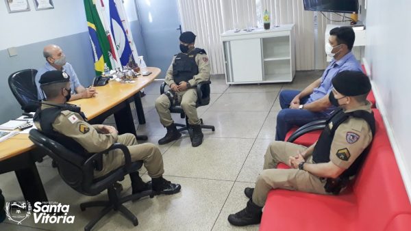 o Márcio Quirino de Souza, recebeu na tarde desta quinta-feira (19) o comandante do 6º Pelotão PM de Santa Vitória, 2º tenente PM Leonardo Rodrigues dos Santos.