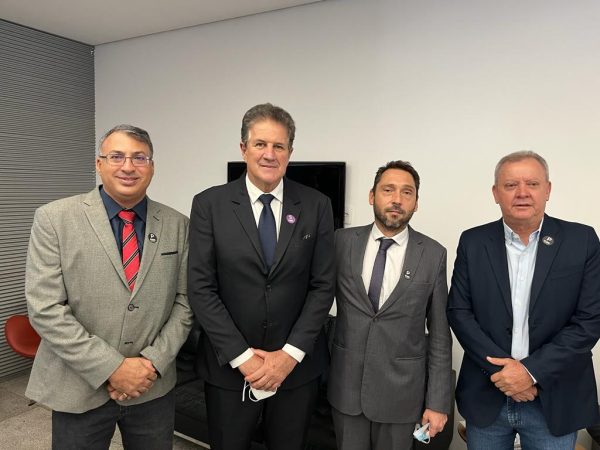 Prefeito de Santa Vitória – MG Salim Curi, assina convênio de óleo diesel fornecido pelo Pró Mananciais/ Copasa na presença de Adilson e Mário da Copasa da Cidade de Frutal MG.