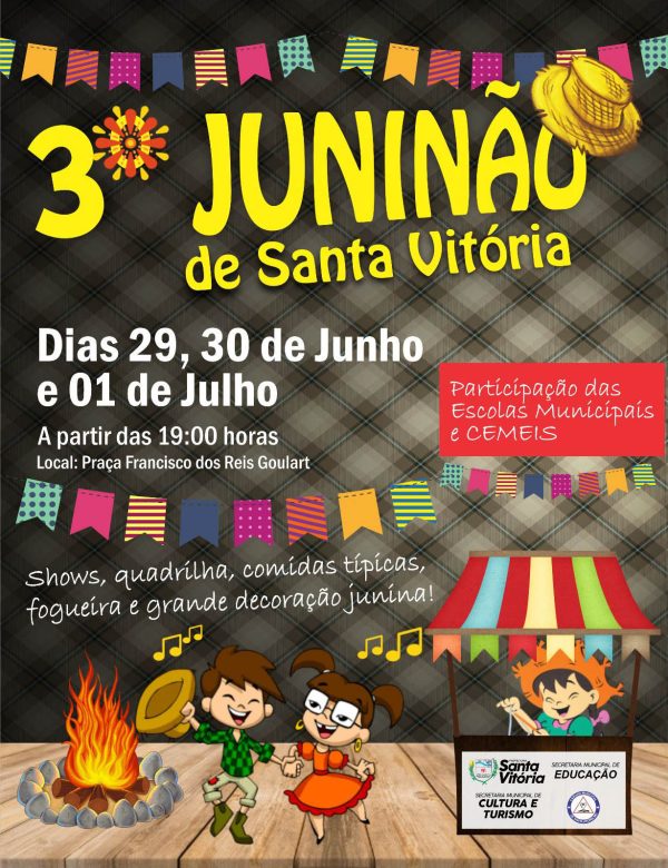 A Prefeitura de Santa Vitória promove nos dias 29, 30 de junho e 1 de Julho, o 3° Juninão de Santa Vitória.