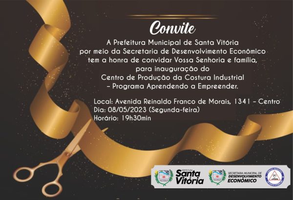 A Prefeitura de Santa Vitória, por meio da Secretaria de Desenvolvimento Econômico vai inaugurar, na próxima segunda-feira, dia 08, o Centro de Produção da Costura Industrial – Programa Apreendendo a Empreender. A inauguração será as 19 horas e 30 minutos na sede do projeto na Avenida Reinaldo Franco de Morais, 1341, no centro.