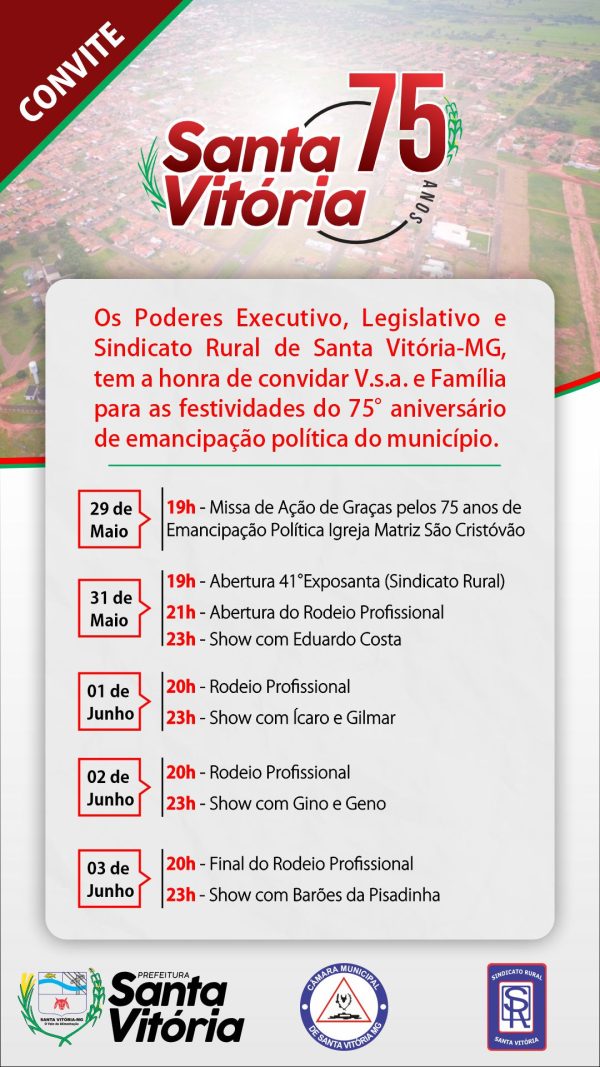 A prefeitura de Santa Vitória, por meio da Secretaria de Esportes e Lazer, agradece a todos os competidores, alunos, professores que fizeram da fase sediada no município, uma competição de excelência e muito bem organizada.Um agradecimento especial a todas as delegações que vieram e participaram sendo elas de Cachoeira Dourada, Canápolis, Capinópolis, Centralina, Gurinhatã, Ipiaçu e Ituiutaba.