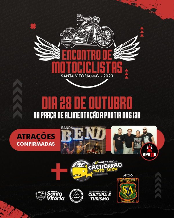 Vai acontecer na cidade de Santa Vitória no próximo dia 28 de outubro o “Encontro de Motociclistas – Santa Vitória 2023”, na Praça da Alimentação a partir das 13 horas. Mais um evento com o promovido pela prefeitura de Santa Vitória por meio da secretaria de Cultura e Turismo, Câmara Municipal e com o apoio…