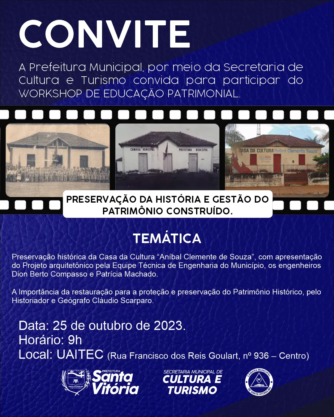 - A Secretaria Municipal de Cultura e Turismo vai promover Workshop de Educação Patrimonial