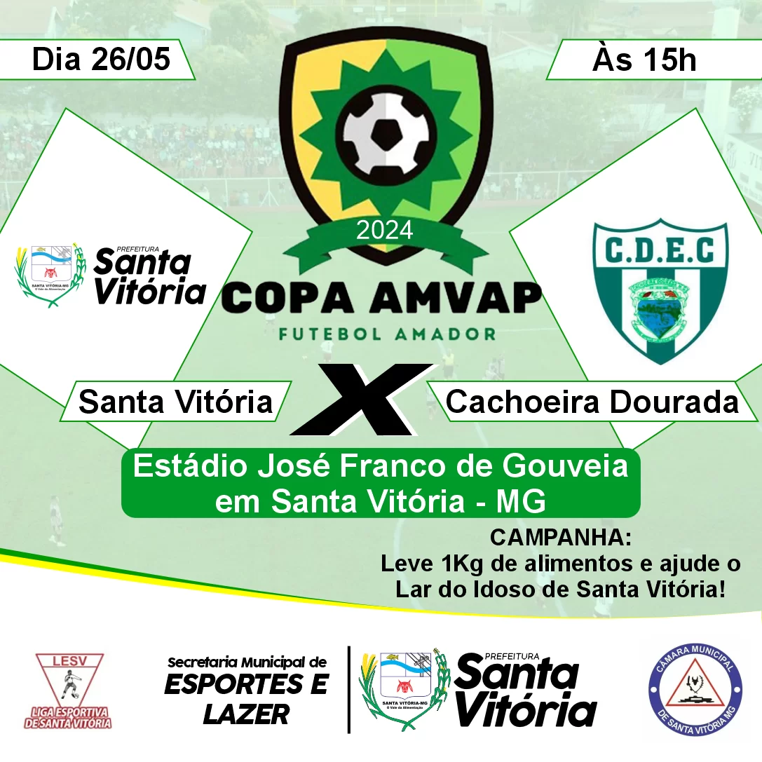 Vai começar o calendário esportivo da Copa Amvap 2024 com a estreia da equipe de Santa Vitória no torneio no próximo dia 26, domingo, às 15 horas no estádio José Franco de Gouveia. O confronto inicial será contra a equipe de Cachoeira Dourada de Minas.
