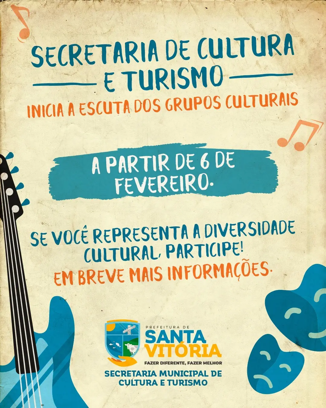 A Secretaria Municipal de Cultura e Turismo de Santa Vitória quer ouvir você!