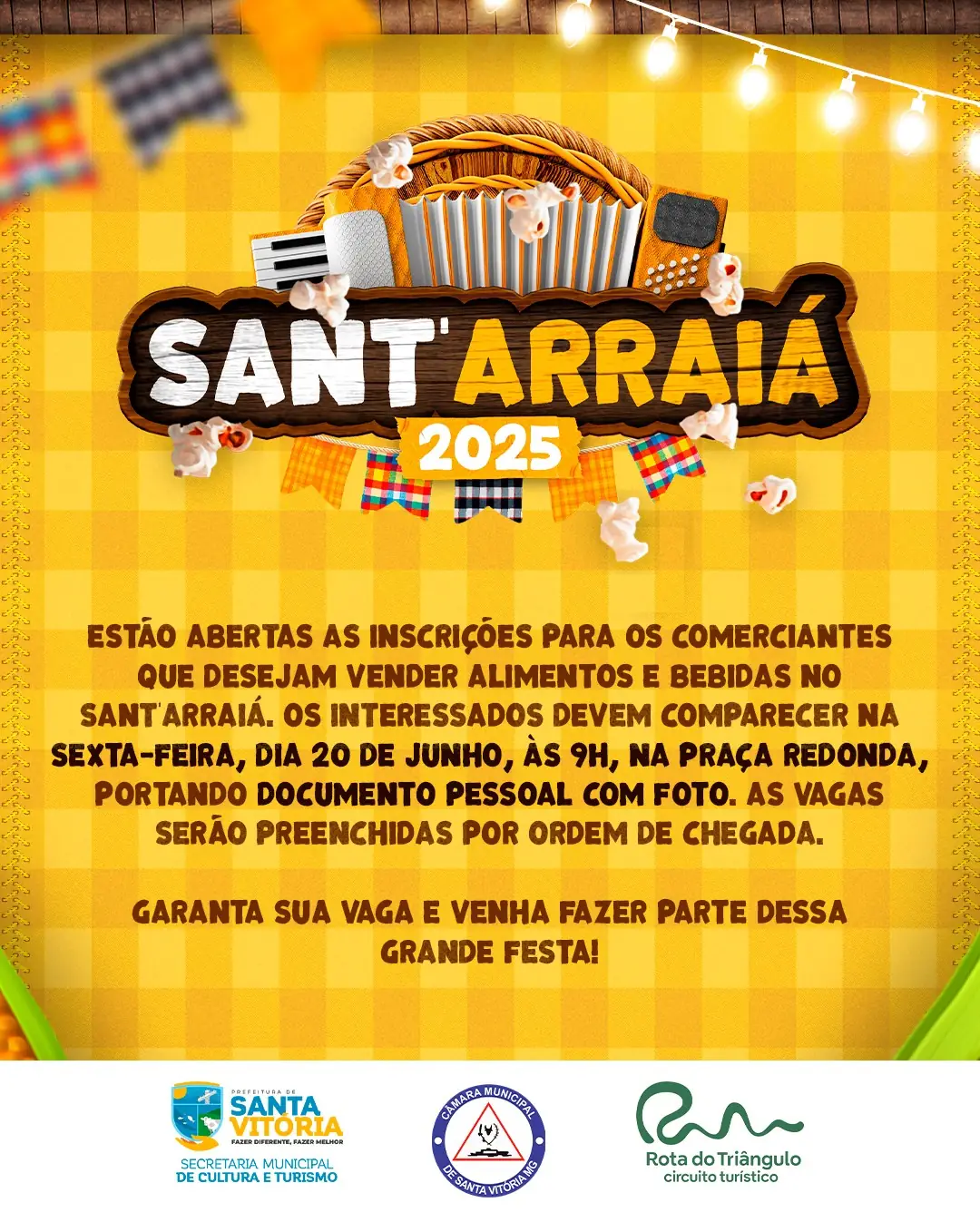 Estão abertas as inscrições para quem deseja vender alimentos e bebidas no nosso tradicional Sant’Arraiá!
