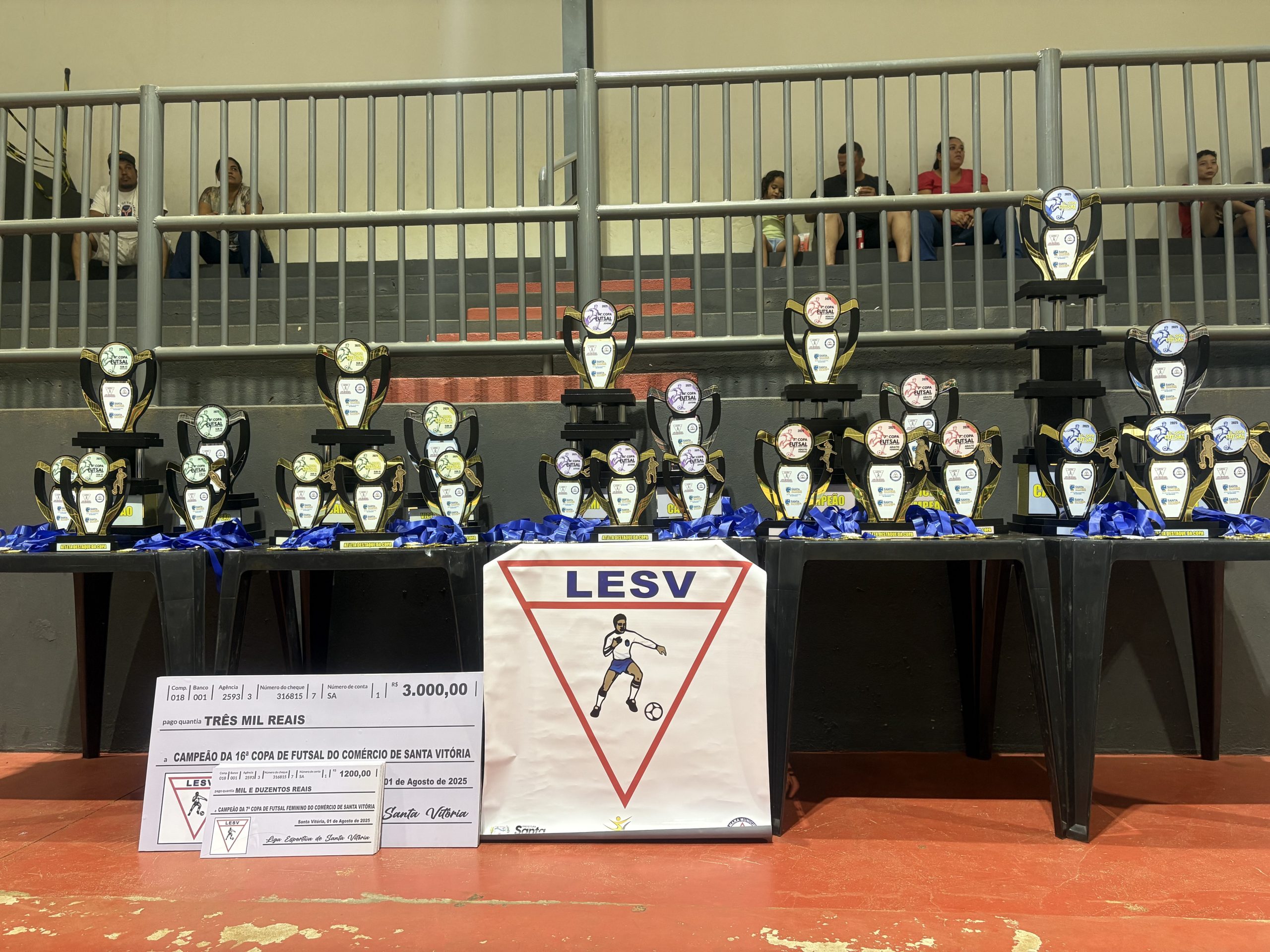Na noite do dia 1º de agosto, o Ginásio Pio Bonito foi palco das grandes finais da 16ª Copa de Futsal do Comércio, encerrando uma jornada esportiva que movimentou Santa Vitória entre os dias 6 de junho e 1º de agosto de 2025.