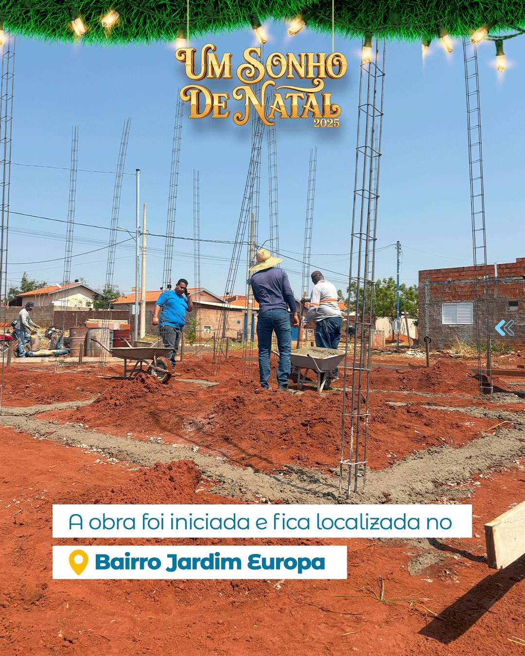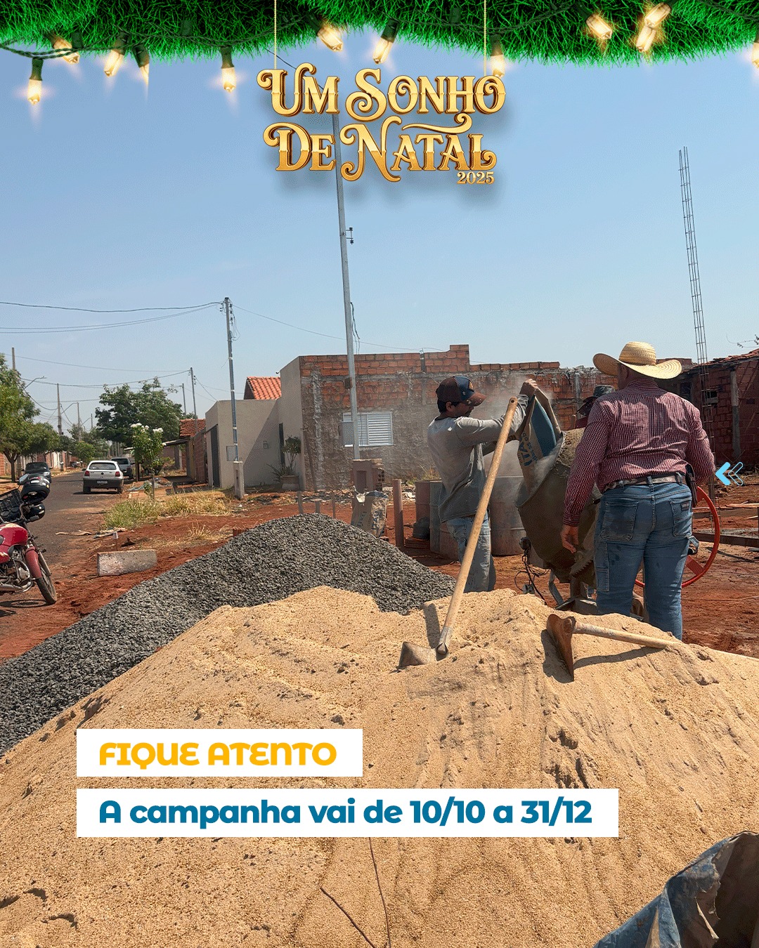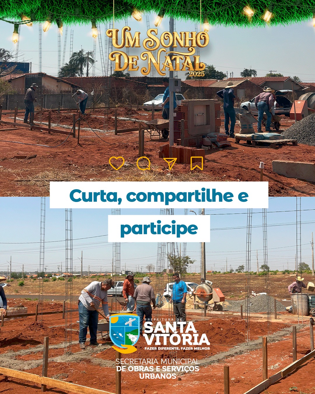 A Prefeitura de Santa Vitória já deu início à construção da casa que será o grande prêmio da campanha “Um Sonho de Natal” ACISV/CDL 2025. Localizada no Bairro Jardim Europa, a obra segue em ritmo acelerado para que, no fim do ano, uma família possa realizar o tão sonhado desejo da casa própria.