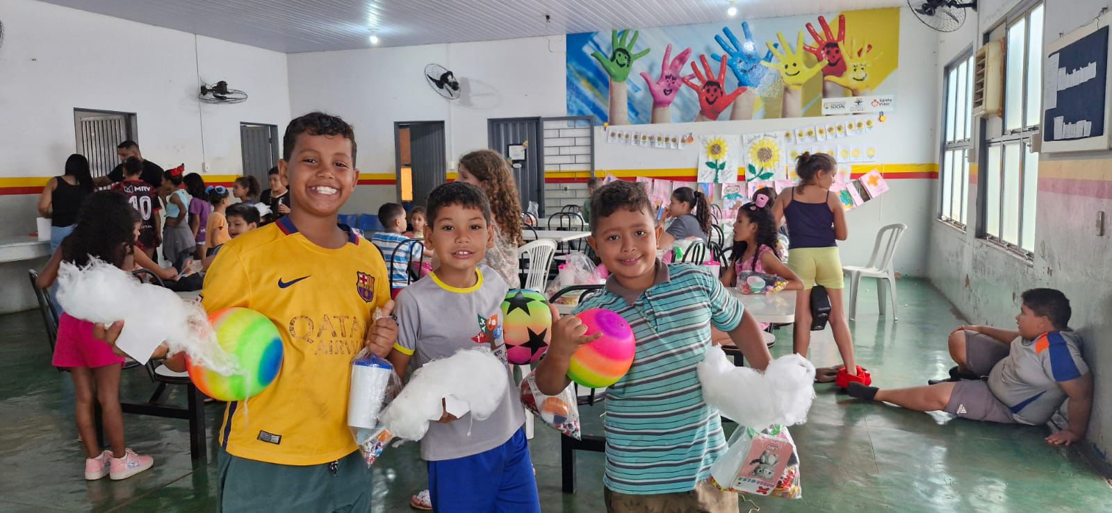 Durante as ações, foram distribuídos brinquedos, lanches especiais e promovidas diversas brincadeiras, que encantaram os participantes e proporcionaram um ambiente de diversão e convivência.