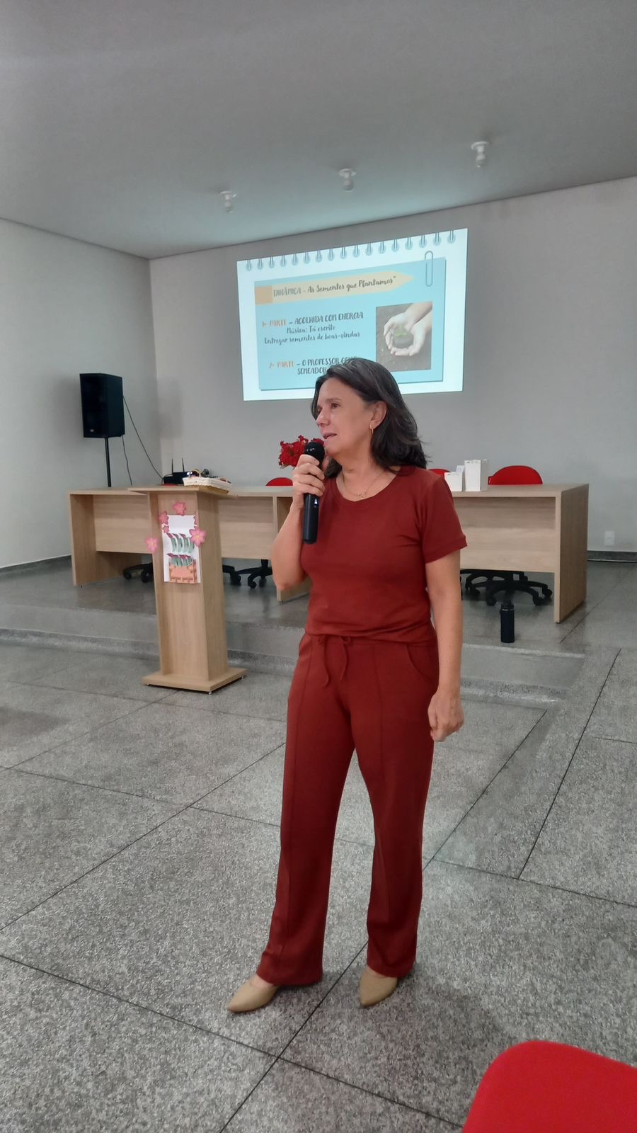 Durante o encontro, foram abordados temas fundamentais para a atuação dos professores de apoio, iniciando com a dinâmica reflexiva “As sementes que plantamos”, que proporcionou um momento de sensibilização e reflexão sobre o papel do educador no processo de inclusão. Também foram discutidos os princípios da Educação Inclusiva, as principais legislações vigentes que norteiam a Educação Especial, bem como as atribuições dos professores de apoio no contexto escolar e a importância do trabalho colaborativo com o professor regente. A formação contemplou ainda orientações sobre adaptação na prática pedagógica, apresentando os tipos de adaptação pedagógica (de pequeno, médio e grande porte), além de reflexões sobre a identificação e eliminação das barreiras que dificultam o processo de ensino e aprendizagem, visando garantir o acesso, a permanência e a aprendizagem dos estudantes público-alvo da Educação Especial.