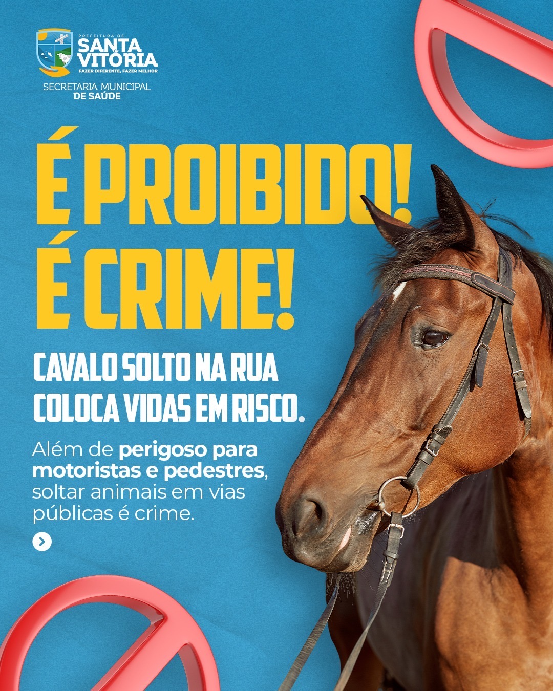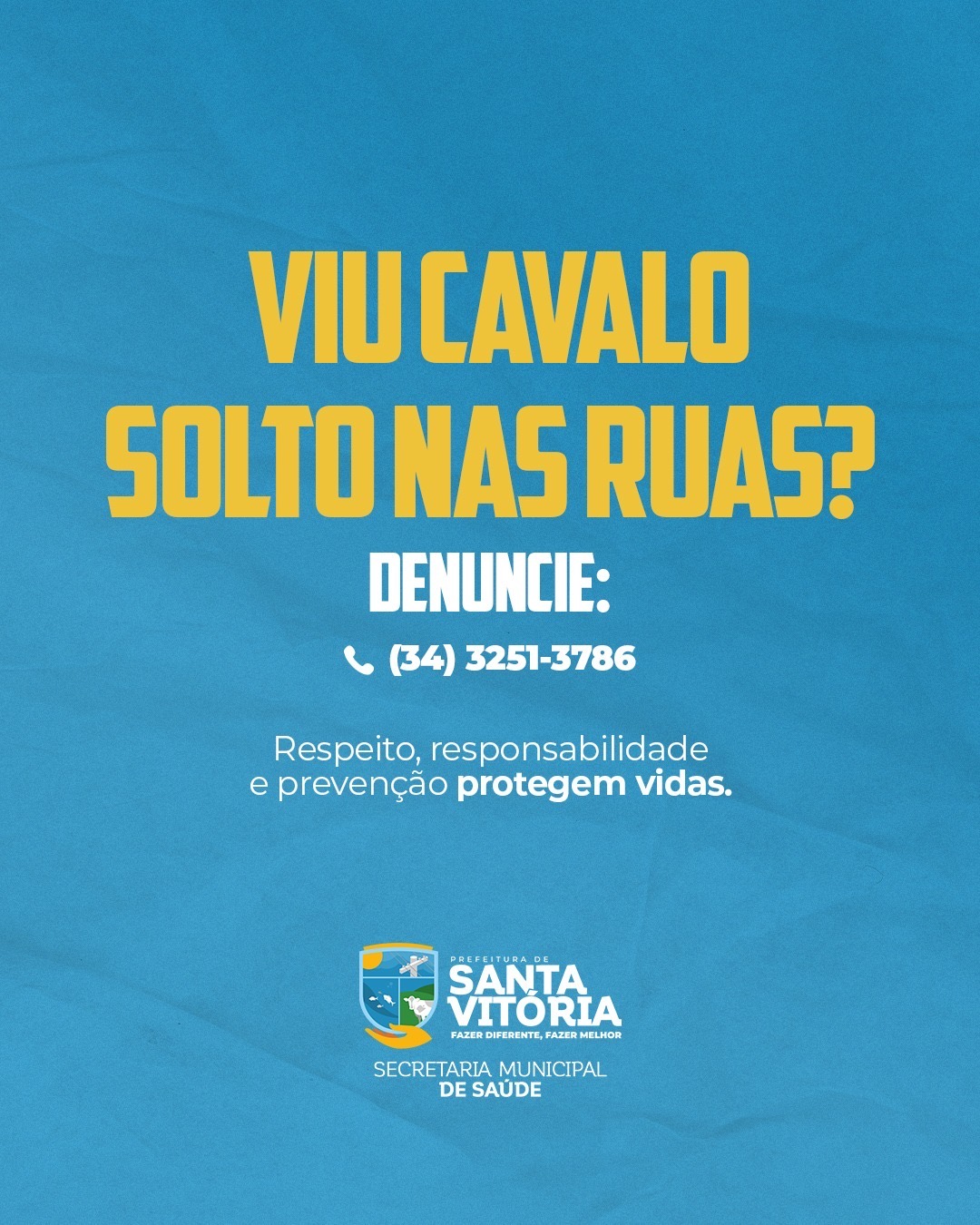 A Prefeitura de Santa Vitória alerta a população sobre os riscos causados por animais soltos nas vias públicas. A presença de animais nas ruas pode provocar acidentes, colocando em perigo motoristas, pedestres e também os próprios animais.