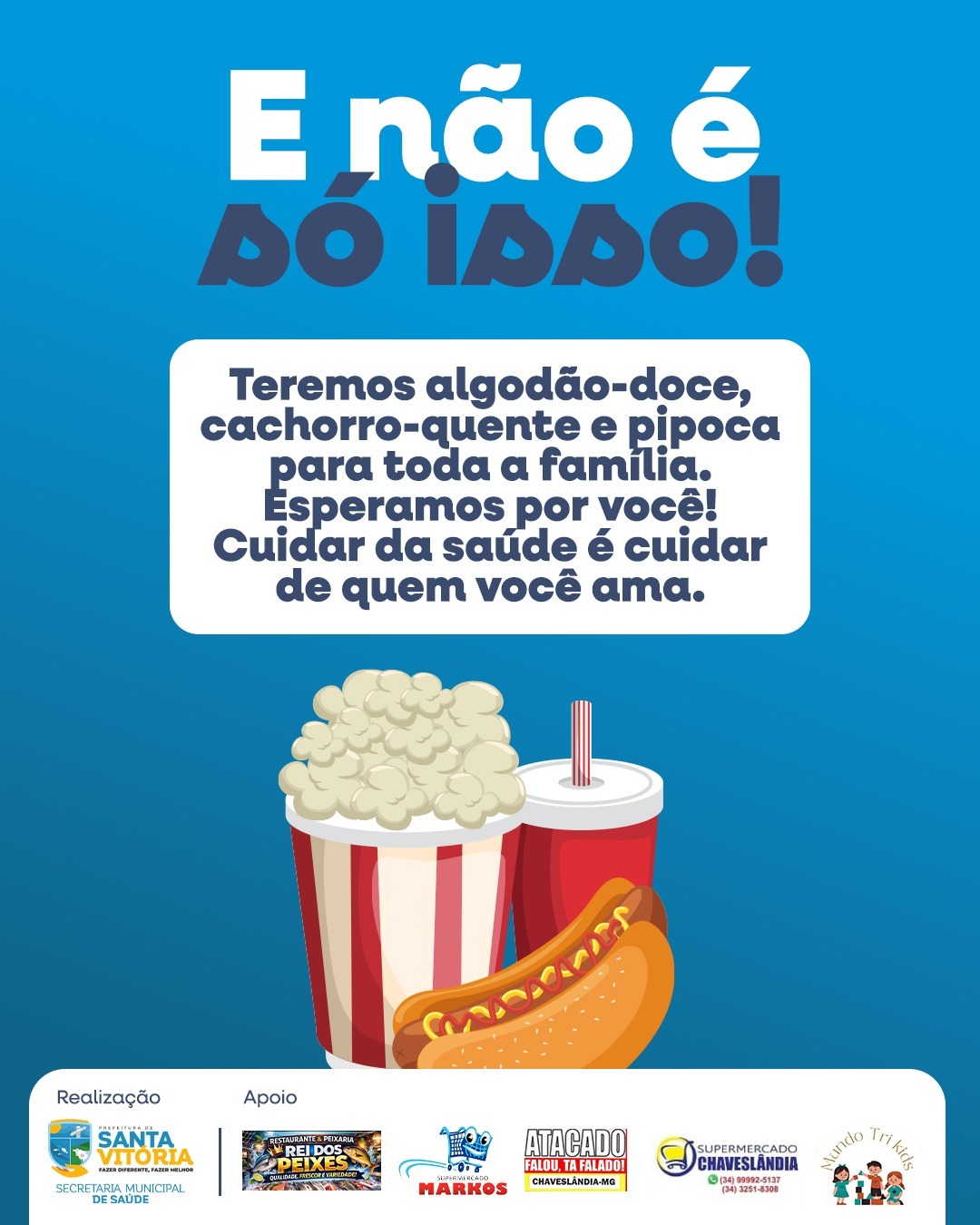 Além dos serviços de saúde, o evento também contará com um momento de integração e lazer para as famílias, com distribuição de pipoca, algodão doce e cachorro-quente, tornando a experiência ainda mais acolhedora e especial para todos.