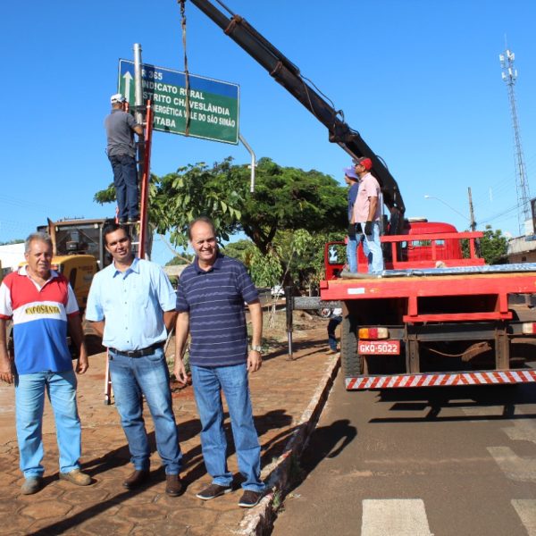 abr282022 O Vice-Prefeito e Presidente da Comissão Municipal de Trânsito, Renato José de Paula, juntamente com o Diretor de Trânsito Fábio Almeida Clorival Guimarães acompanhando as instalações de placas elevadas indicativas. Administração28/04/2022