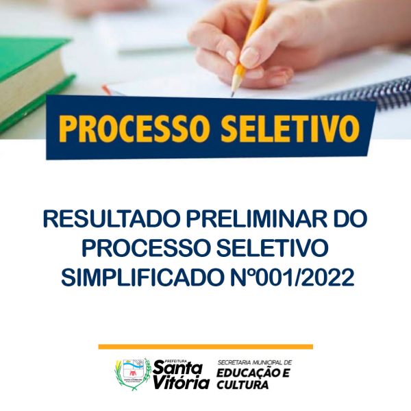 jan272022 Prefeitura Municipal de Santa Vitória divulga resultado preliminar do Processo Seletivo Simplificado para Preenchimento de Vagas na Rede Municipal de Ensino Editais, Educação, Processo Seletivo Simplificado N° 001/2022, Processos Seletivos27/01/2022