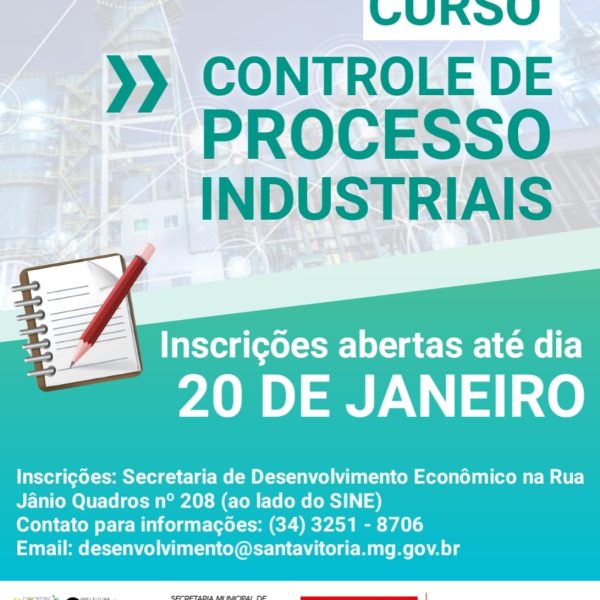jan182022 Prefeitura de Santa Vitória e SENAI oferecem curso gratuito de Controle de Processos Industriais Desenvolvimento Econômico18/01/2022