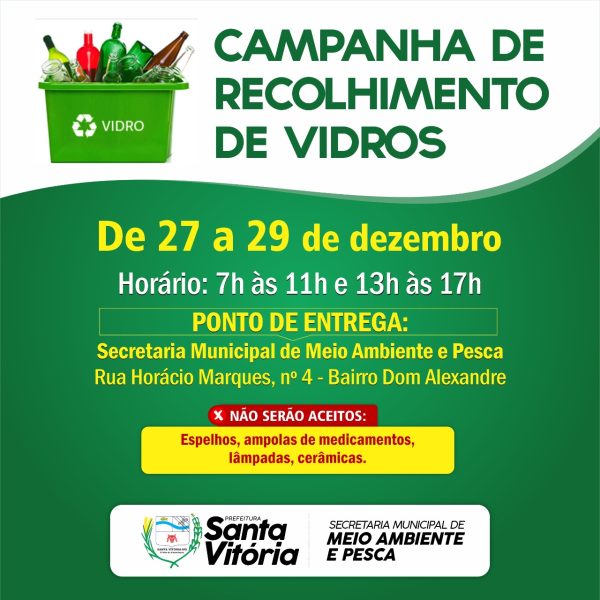 dez272021 Prefeitura realiza Campanha de recolhimento de vidros em Santa Vitória Meio Ambiente e Pesca27/12/2021