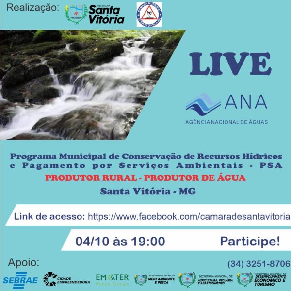set242021 A Prefeitura de Santa Vitória em parceria com a Câmara Municipal, Emater e Sebrae realizam live sobre “Produtor de Água” Agricultura, Pecuária e Abastecimento, Desenvolvimento Econômico, Meio Ambiente e Pesca24/09/2021