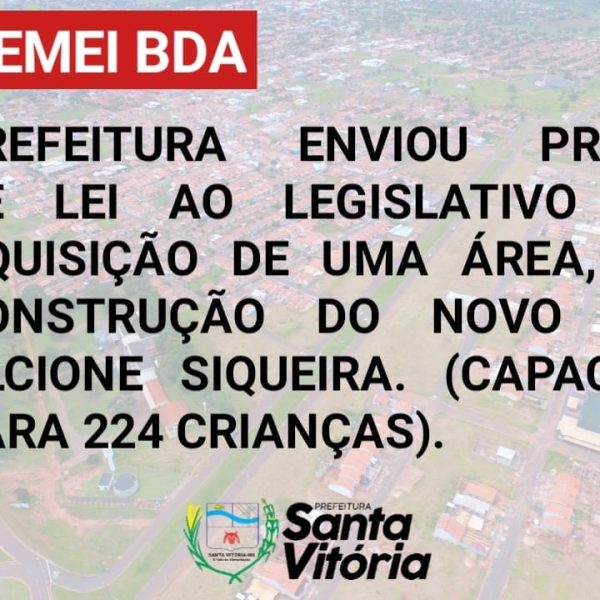 ago302021 Prefeitura envia projeto à Câmara para construção do novo CEMEI Alcione Siqueira Educação, Obras e Serviços Urbanos30/08/2021
