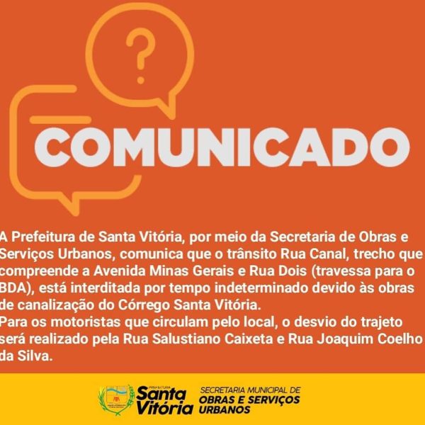 ago42021 Prefeitura interdita travessia da Rua Canal para obras de canalização do Córrego Santa Vitória Obras e Serviços Urbanos04/08/2021