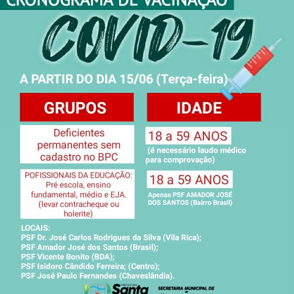 jun152021 Prefeitura inicia vacinação contra Covid-19 em profissionais da educação e deficientes permanentes sem cadastro no BPC Saúde15/06/2021