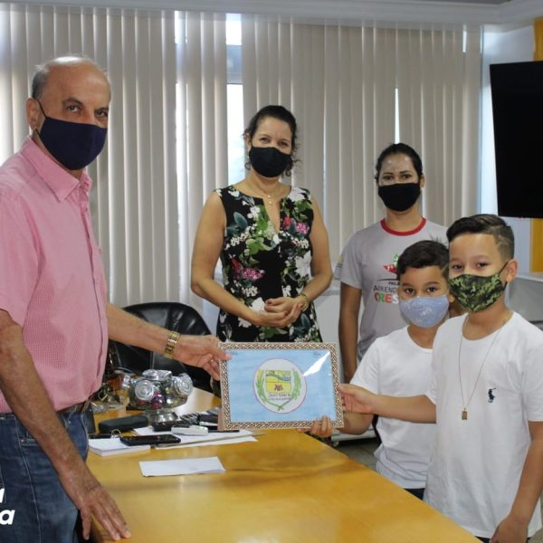 jun32021 Em comemoração ao aniversário da cidade alunos do Projeto Aprendendo a Crescer de Santa Vitória prestam homenagem no gabinete do prefeito Desenvolvimento Social03/06/2021