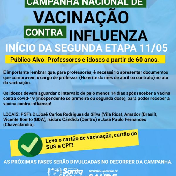 maio112021 Secretaria de Saúde inicia vacinação contra influenza em idosos e professores Saúde11/05/2021