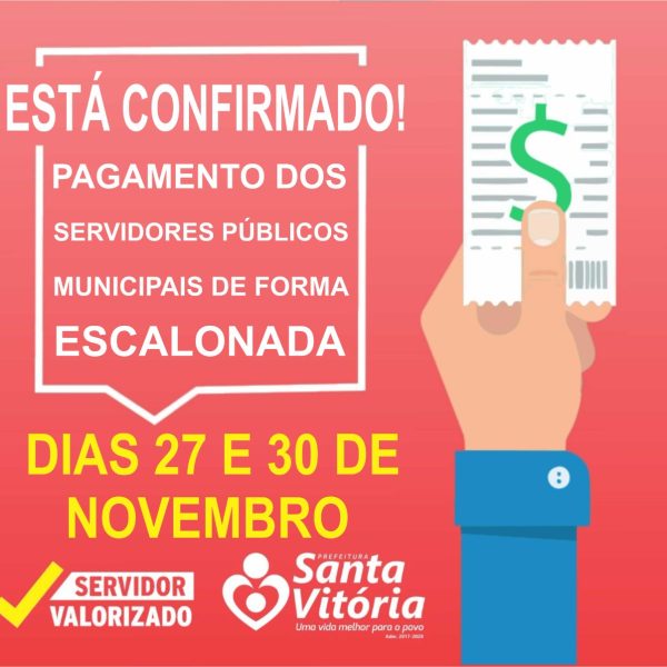 nov252020 Dias 27 e 30 acontecem o pagamento dos servidores públicos do Município Administração, Fazenda e Planejamento25/11/2020