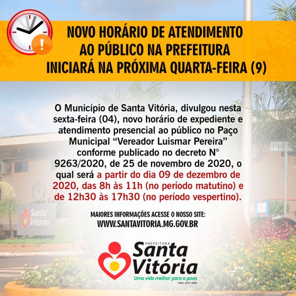 dez42020 Novo horário de atendimento ao público na Prefeitura iniciará na próxima quarta-feira (9) Outras04/12/2020