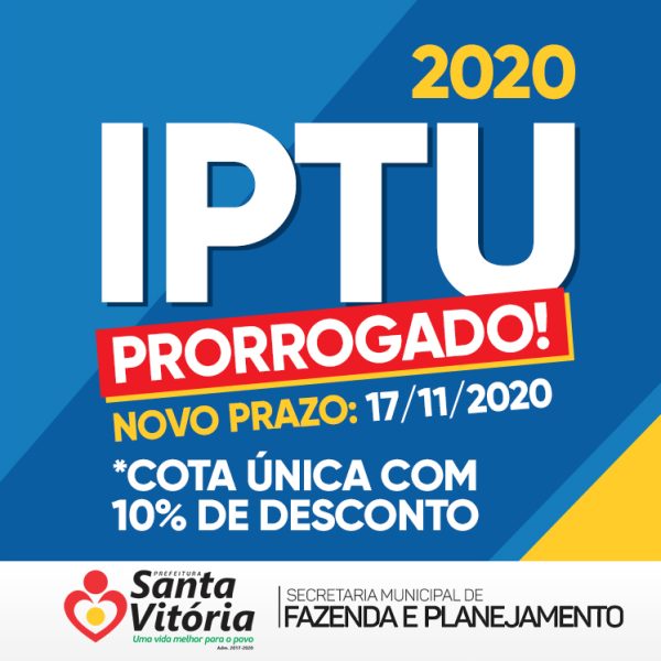 abr172020 Prefeitura prorroga vencimento do IPTU 2020 em cota única com 10% de desconto para novembro Fazenda e Planejamento17/04/2020