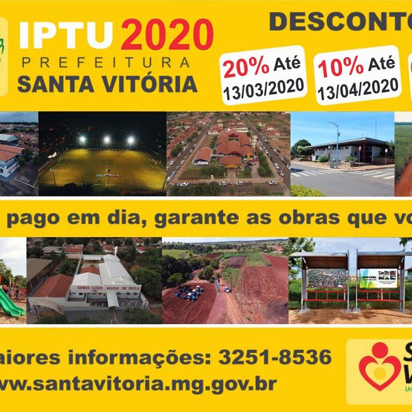 fev112020 Veja datas de vencimento e regras para pagamento do IPTU 2020 em Santa Vitória Fazenda e Planejamento11/02/2020