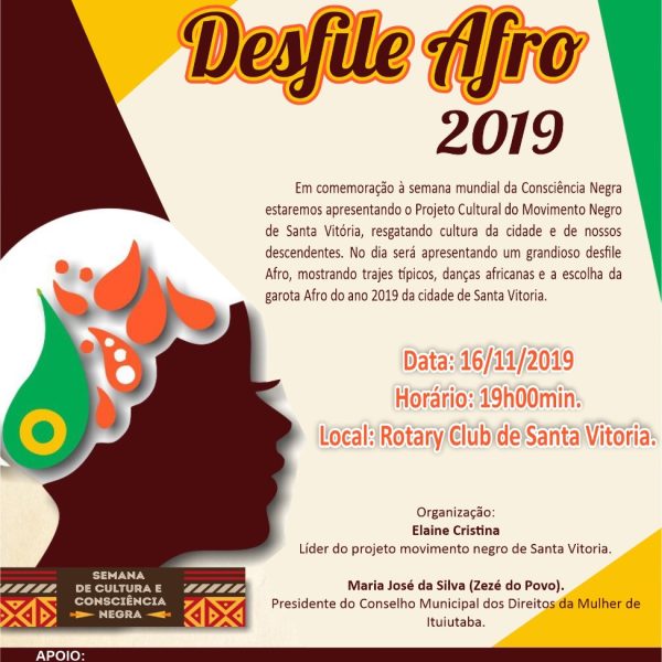 nov52019 Um sensacional Desfile Afro e Escolha da Garota Afro 2019 em Santa Vitória! Governo05/11/2019
