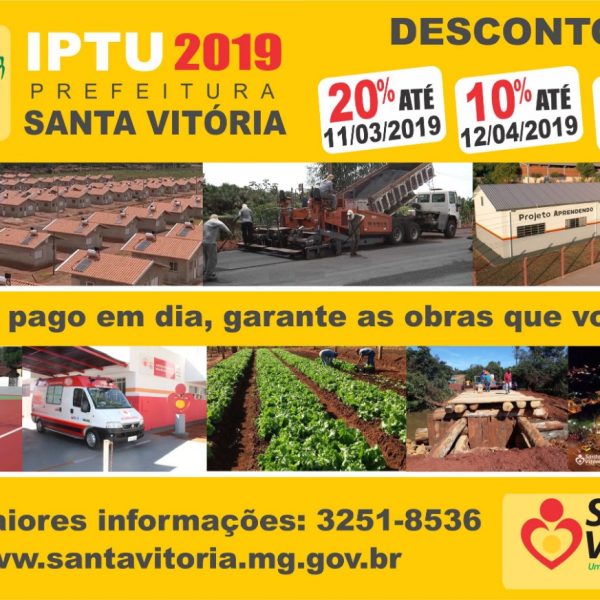 fev52019 Prefeitura de Santa Vitória decreta formas de pagamento do IPTU 2019 e oferece descontos especiais Fazenda e Planejamento05/02/2019