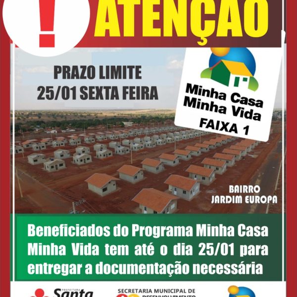 jan212019 Beneficiados do Programa Minha Casa Minha Vida tem até o dia 25/01 para entregar a documentação necessária Desenvolvimento Social21/01/2019