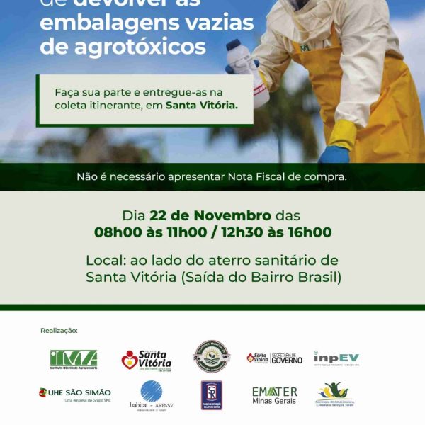 out312018 Coleta itinerante de embalagens vazias de agrotóxicos Agricultura, Pecuária e Abastecimento31/10/2018