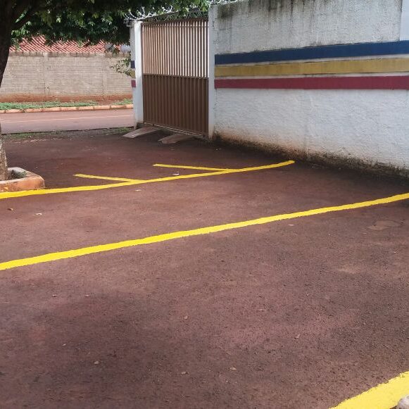 abr52018 Prefeitura reforça pintura de faixas de sinalização na área do estacionamento da PM de Chaveslândia Obras e Serviços Urbanos05/04/2018